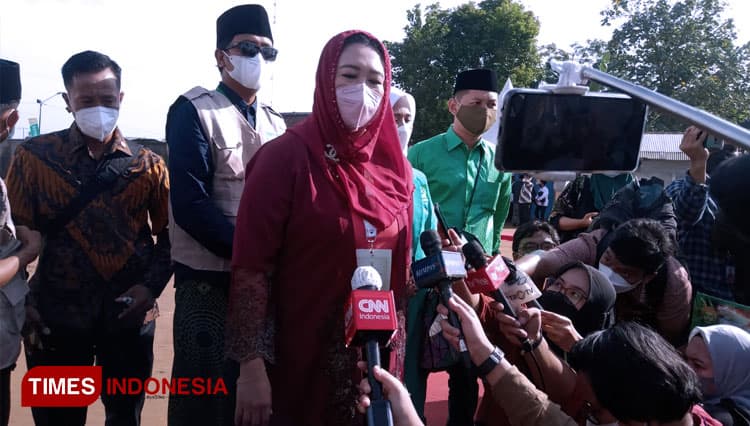 TIMES Riau/Putri Abdurrahman Wahid (Gus Dur) Yeny Wahid saat diwawancarai oleh awak media. (FOTO: Moh Ramli/TIMES Indonesia)